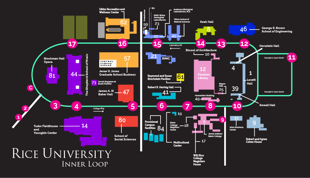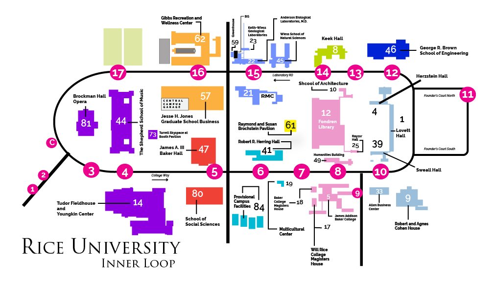 While working for Rice, I saw that the students were having a hard time reading the current map and I as well. So, I decided to create a map that was more pleasing to the eye and easer to read.
